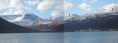 Farið með músarbendilinn yfir punktana til að sjá örnefnin.