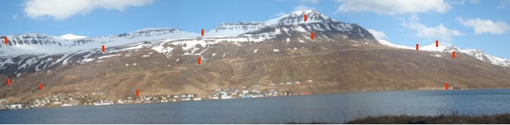 Farið með músarbendilinn yfir punktana til að sjá örnefnin.